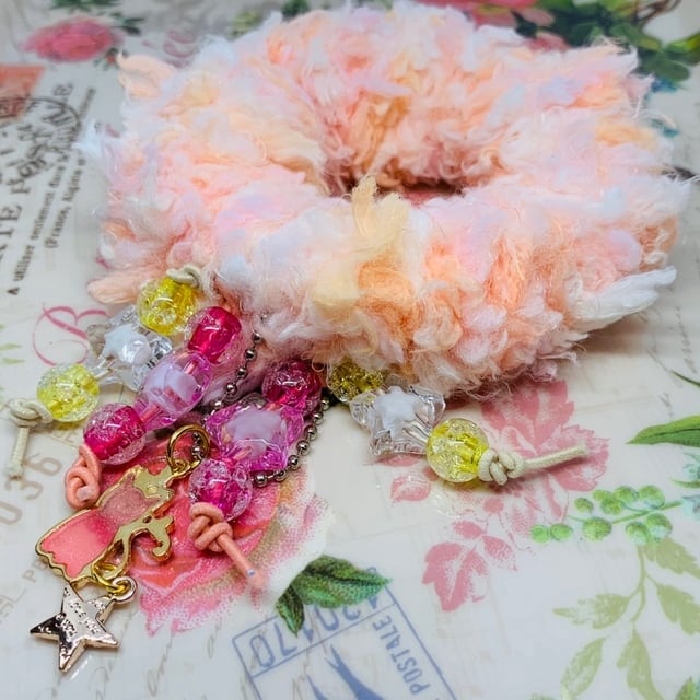 ピンク&オレンジと ピンク&ホワイトの毛糸を使用しました☆